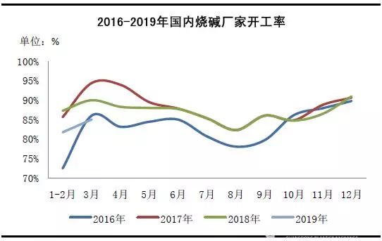 图2 2016-2019年国内烧碱厂家开工率