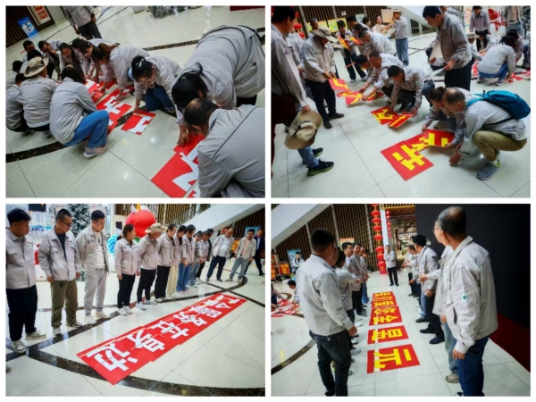 在拓展训练中,各组成员周密安排,明确分工,高效快捷地进行拼字。在激烈的角逐中,助威声、喝彩声响成一片。当“工会服务在身边,我们爱您金昱元”十四个大字整齐拼成后,大家喜笑颜开、热烈欢呼,对工会组织的感恩之情和对企业的自豪感与荣誉感油然而生。