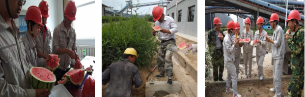 检修前线后勤服务暖人心。公司坚持“团结 拼搏 求实 创新”的企业精神,积极开展夏日“送清凉”系列活动,检修现场热火朝天,炎炎夏日,煮好的冰糖菊花水、矿泉水、西瓜等送到新建化验室清扫现场、检修现场,缓解酷热,增加了员工的热情和干劲,也保证了高温环境下检修各项工作有条不紊地进行,他们时刻为检修服务、为生产服务,确保检修项目顺利、圆满完成。