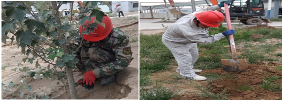 他们对绿化植物进行现场清理,根据土质特点栽种不同的树木、花卉;对原有绿化部分缺损的树木进行补种;对已成活花草树木进行修剪、施肥;将精细化管理贯穿到整个植树绿化活动中,确保树木的健康生长和绿化效果。