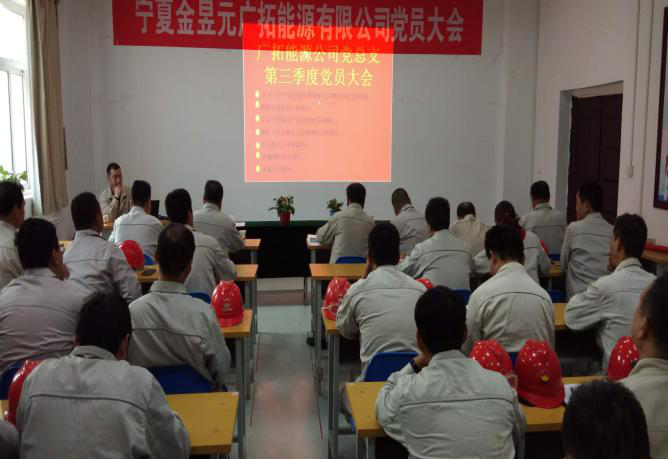 2018年10月16日下午16:30分,宁夏金昱元广拓能源有限公司党总支“主题党日+”活动及三季度党员大会在化工调度室召开,公司党总支书记马建东主持会议。集团公司党委副书记王立军及全体党员、发展对象、入党积极分子共计60余人参加会议。
