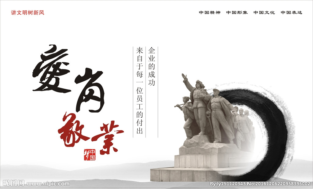 爱岗敬业,要勤于职责。以“尽心、尽力、尽责”的状态对待工作。工作是个人成长之基,事业进步之源。作为一名员工,要正视自己的角色,找准自己的位置,牢记自己的职责使命。首先,要把工作当事业干。个人的事业在哪里?就是自己的本职工作,就在自己的工作岗位。我们常说要干出一番事业,就是在本职工作上奋发有为。本职工作很出色,很有成效,事业就有了,就成功了。其次,要把工作当做乐趣干。我们大家应该有这样的感受,当我们经过加班加点完成的工作,得到领导肯定的时候;当你经过冥思苦想的新举措得以实施的时候,就会有一种自豪感和成就感。把工作当成享受,再苦再累,也心甘情愿愿。