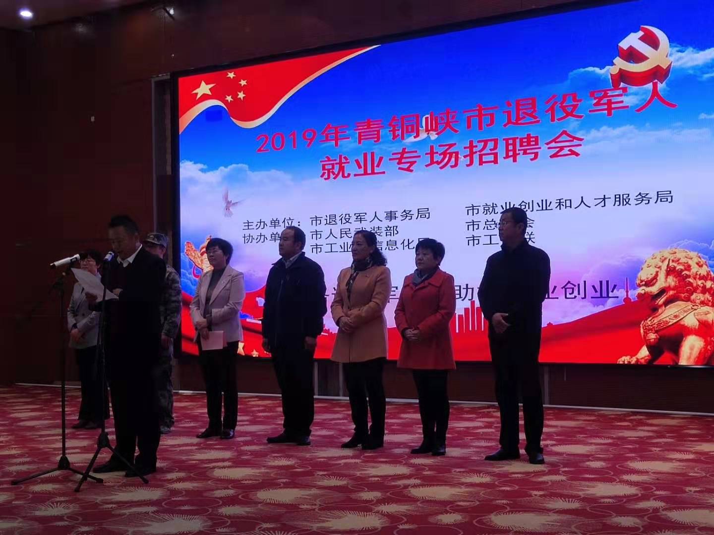2019年10月23日上午,资源再生公司组织人员参加由青铜峡市退役军人事务局、就业创业和人才服务局主办的2019年退役军人就业专场招聘会。招聘现场,前来咨询的人员络绎不绝,通过我们的详细介绍,拥有一技之长和大专毕业证的退伍军人对我公司的维修岗位有就业意向,填报名表的将近有十人,我们期待他们的加入,并在资源再生这个大舞台展现他们的风采。