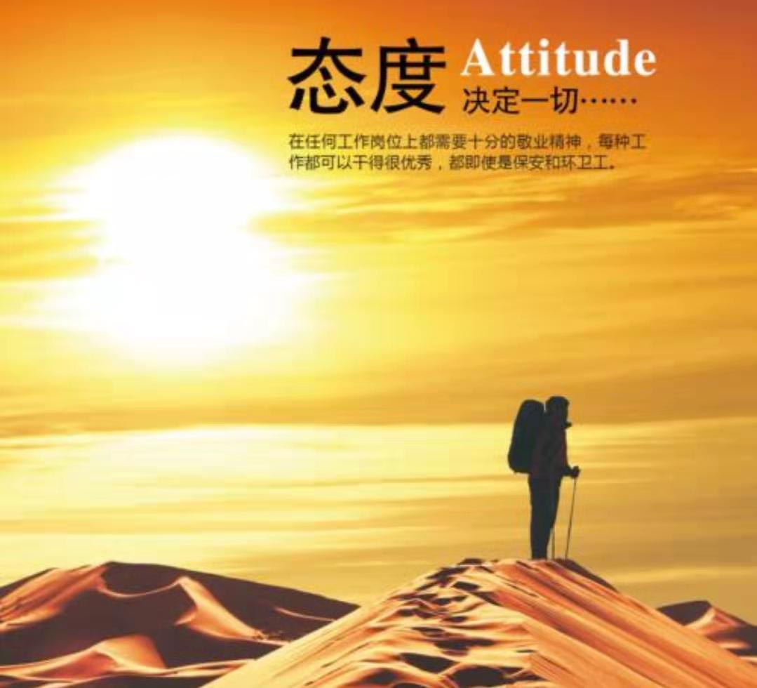 态度决定成败。经常听领导说,细节决定成败,过程决定结果。是的,而细节,又可是粗略的就能观察到,装置每个班组,总有好员工于不听话的员工,但无一例外,都在同一个装置的。这么说来,员工的好于坏都完全取决于自己。没有坚决认真的工作态度,又怎会有出群的高成绩。虽然有社会事物的变迁,但这是一种态度问题,同时,由学校扩大至社会,那个成功人士,没有用严谨认真的态度对待自己的工作,好的态度,有着好的命运,而决定着一切的,在自己手中。
