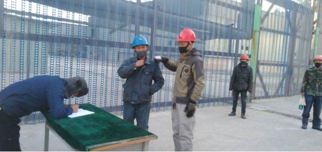 在公司北大门,他们对进出厂区职工及车辆登记,严格“疫情”防控工作。