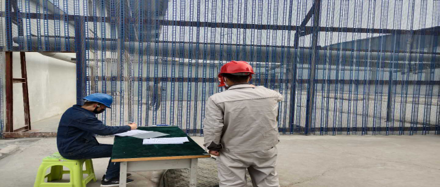 在园区南门,今日截止下午17时整,他们检测、消毒、登记车辆104辆(其中水泥18车辆,熟料10车辆,液碱2车),人员113人信息,体温均在正常范围,另外随行14人体温均在正常范围。