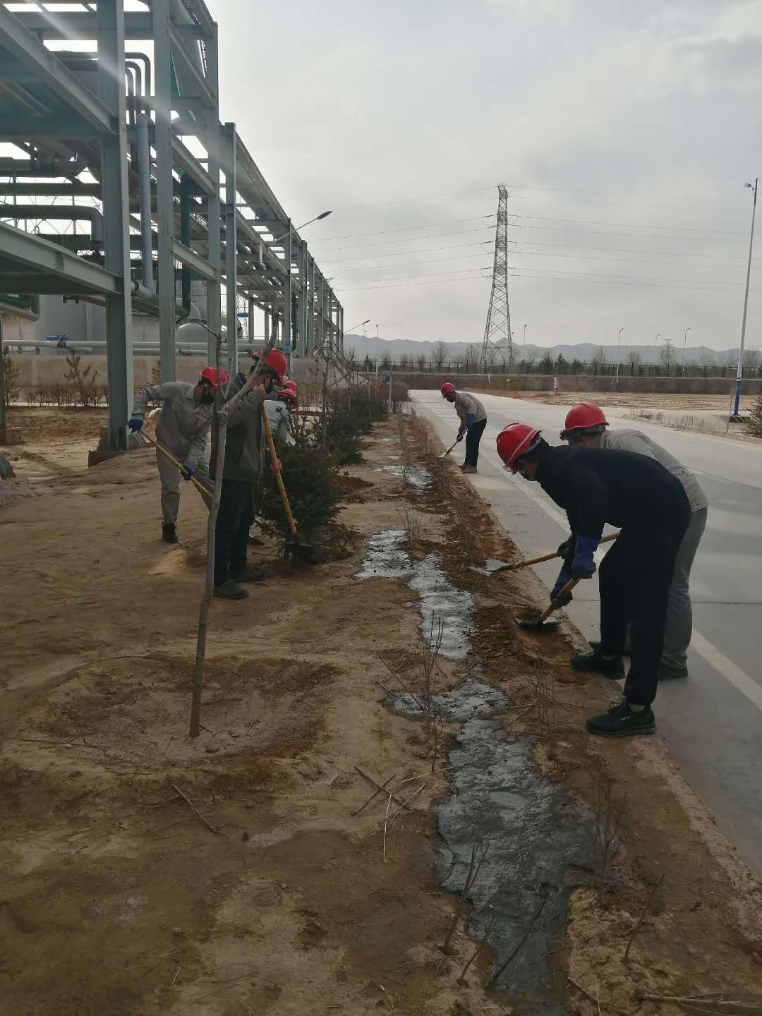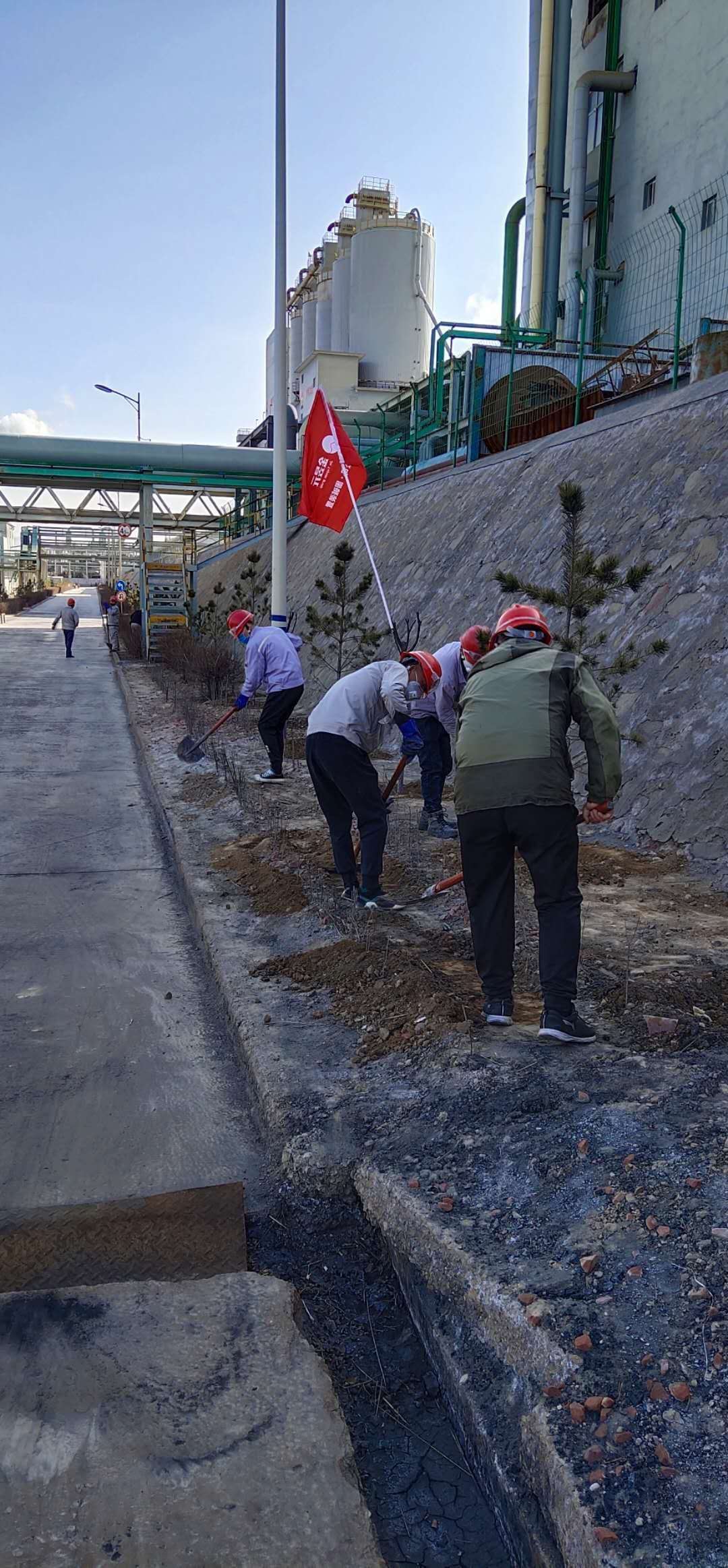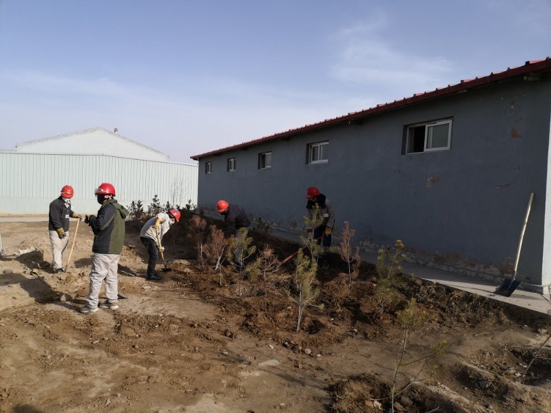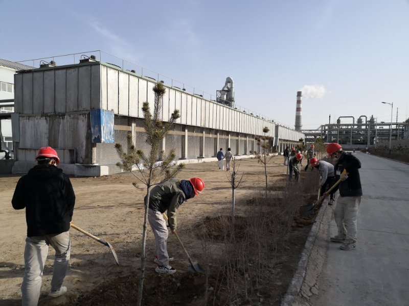 铲土、扶苗、踩实、浇水……随着一串串程序性动作一行行树苗迎风挺立。连日来我公司抓住春季植树造林的大好时机纷纷行动起来,各装置责任到人,分工明确,争相开展植树绿化活动。