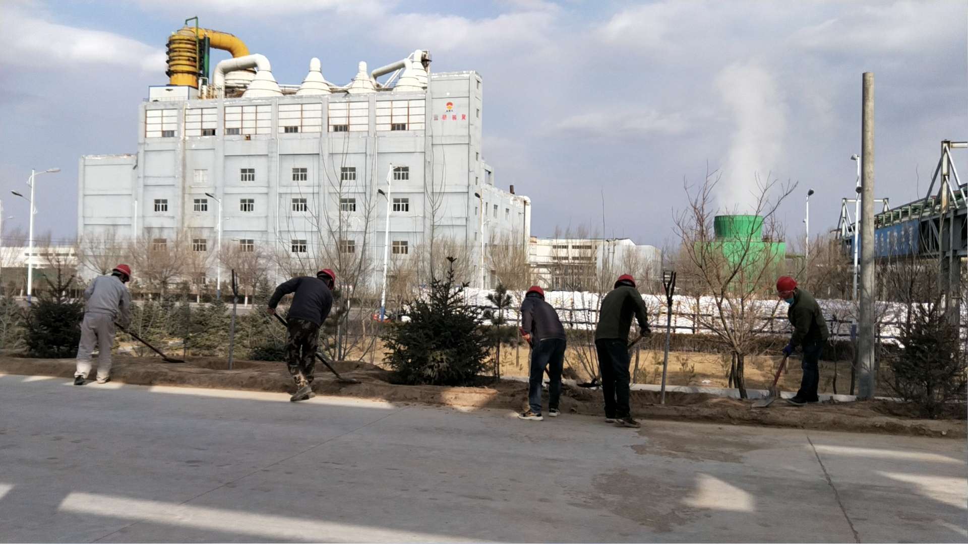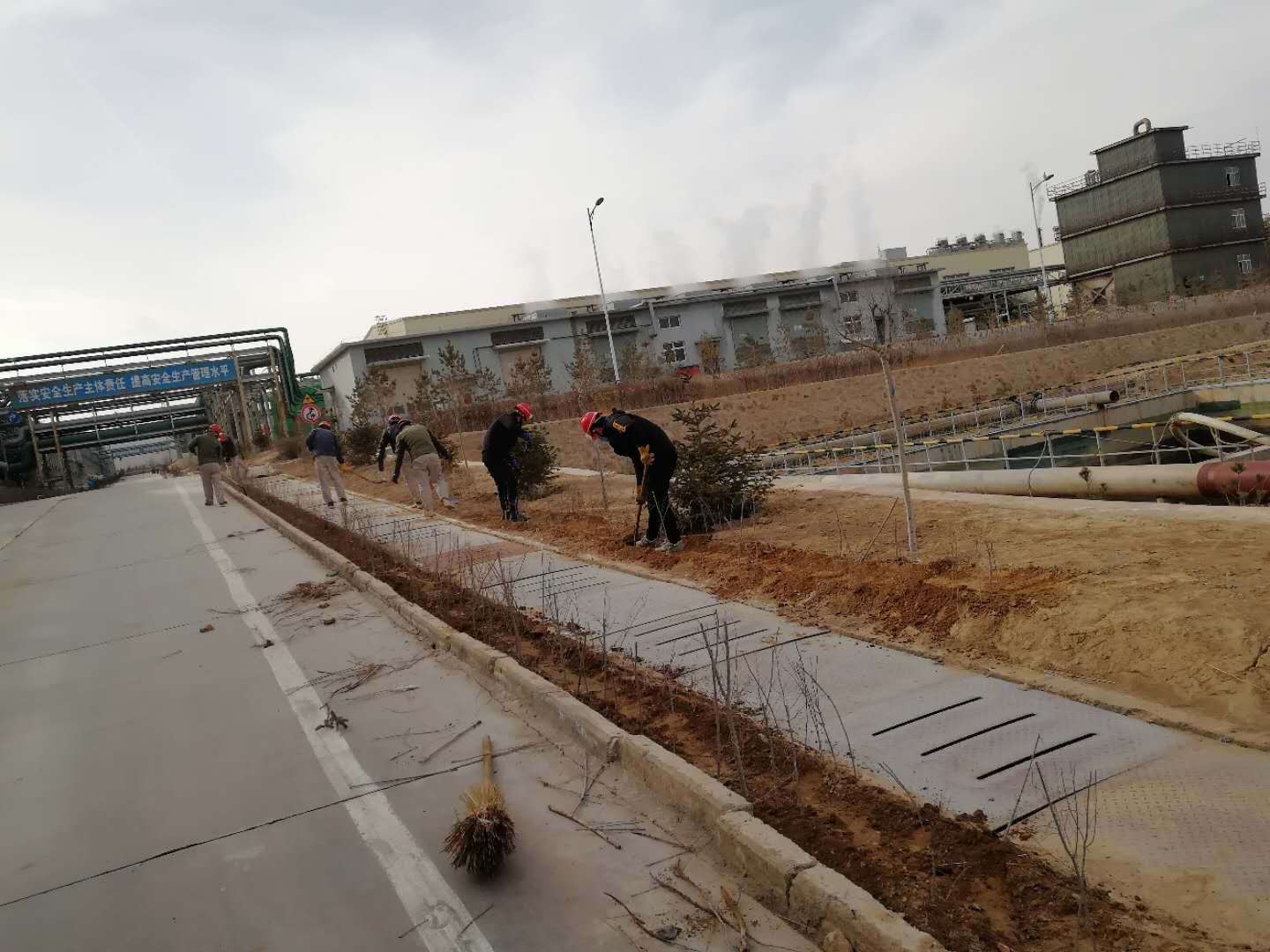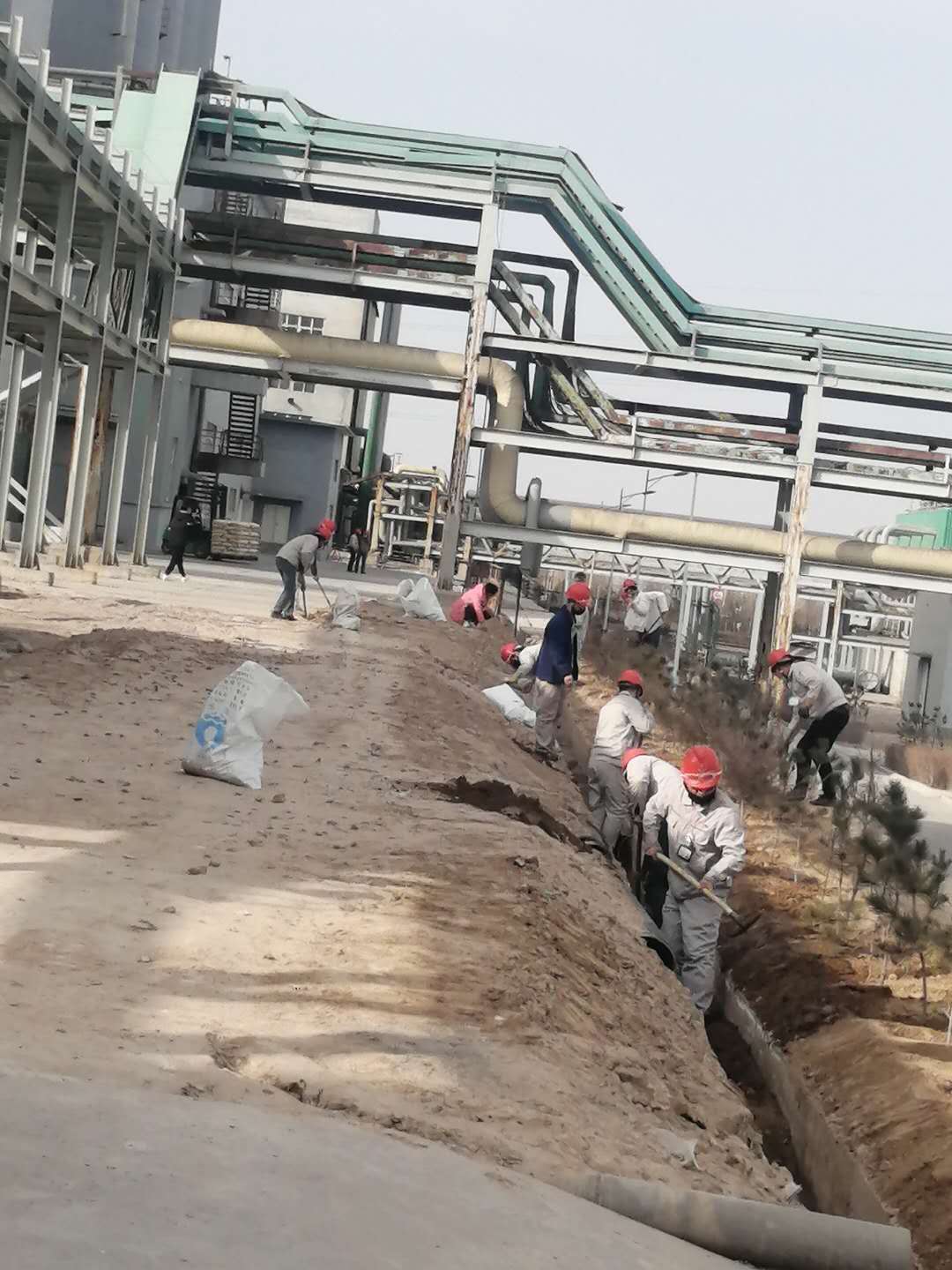铲土、扶苗、踩实、浇水……随着一串串程序性动作一行行树苗迎风挺立。连日来我公司抓住春季植树造林的大好时机纷纷行动起来,各装置责任到人,分工明确,争相开展植树绿化活动。