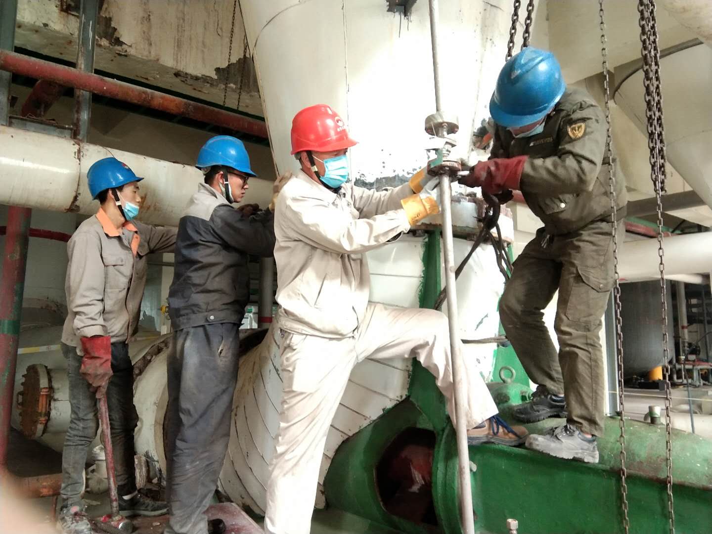 团结就是力量。“加油,一、二、起,一、二、起……”一声声铿锵有力的口号响彻厂区,这是一群可爱的人正在更换引风机轴承的情景。