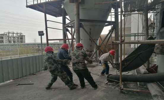 在清理结皮现场,面对预热器本身设备的炙烤外,还有夏季本身炎热,而他们在每一处作业点,都是那样“激战正酣”,他们轮流挥舞着大锤敲打着钢钎,熟练、小心的用着“水炮”,一遍又一遍,敲碎了“结皮”,疏通了管道,每一点都是力气活,耗时耗力。有时候,往往一锤下去钢钎却丝毫不动,但我没从他们脸上看到灰心的表情。近12个小时的工作量,但从井然有序的场面我仍然可以看出他们有分工也有协作,同时铭记安全第一。