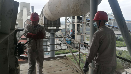 在预热器每一层框架,让我们都会有一种“未见其人,先闻其声”的感觉,锤子的敲击声、检修负责人的交底声,声声入耳,像是一首和谐的乐章。