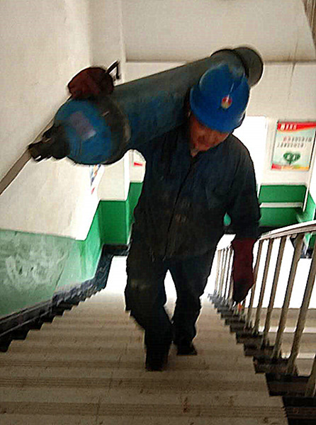 这边没有氧气了,瘦一点的同事扛不动氧气瓶,维修班的袁文二话不说,一把扛到肩上就走了,他的拼搏与担当在一层层楼梯上、在他沉重的脚步中无限延伸……再一次延伸出那“团结、拼搏、求实、创新”的优秀品格和文化内涵。