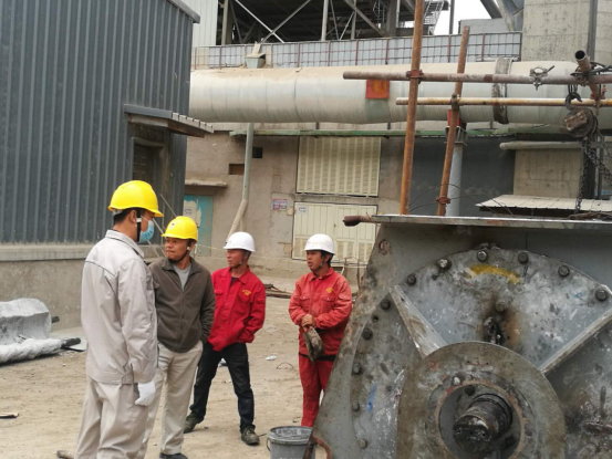 安装窑头排风机、窑尾高温风机,电仪装置装置长王波更是以身作则,风雨中依然亲临现场,亲自带兵指挥,合理地调动安排工作。
