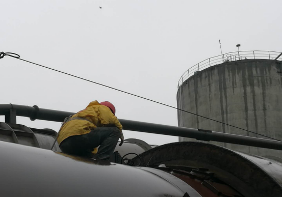为了配合检修,员工们顶着大风雨提早准备好了工器具,在风雨中,他们依旧兢兢业业,坚守岗位,为了检修质量和安全,他们没有选择草草了事,他们一心只想把工作干好,让设备提早恢复生产。 在窑头密封改造、烘干破管道防腐处理、窑头排风机、窑尾高温风机检修项目中。我们看到,头戴安全帽,身穿雨衣或工作服,身系安全带,在风雨中爬高爬低,雨水渗透了他们的衣衫,模糊了他们的眼睛,但阻挡不了他们对工作的热情和耐心。我们听到,平台传来的一阵阵大锤声,原来他们在对位,紧固更换的小套,在风雨面前,即使万般折磨,他们也不敢有丝毫卷怠。因为每一个环节都深深刻着“责任”二字,“安全”二字。在风声,雨声,大锤声中,仿佛金戈铁马奔驰在沙场上。