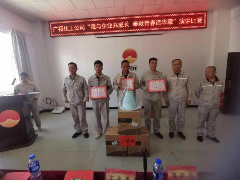 为庆祝中国共产党成立100周年和金昱元建厂30周年,进一步弘扬我公司的企业文化,激发职工干事创业、高效跨越发展的活力,凝聚企业持续和谐发展的合力。2021年5月27日,宁夏金昱元广拓能源有限公司举办了关于“我与企业共成长•奉献青春谱华章”主题演讲比赛活动。