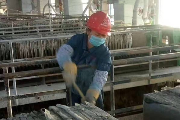 盛夏季节,骄阳似火,热浪袭人,如火的七月,高温侵袭着整个大地。而资源再生公司员工却顶高温,冒酷暑,坚守在自己的工作岗位上。他们忙碌的身影在装置不停的穿梭,形成一道亮丽的风景。走进水泥系统压滤三楼,扑面而来的热浪会让人立即感觉到这里的温度比室外还要高许多,各类生产设备不遗余力地散发着自身的热量。员工们早已是汗流浃背,他们不顾额头流淌的汗水,精心的按工艺流程操作,确保安全高效的生产任务。