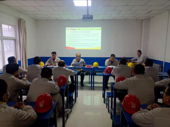 会前,副总经理梁军组织学习了某水泥公司生产部一车间回转窑系统一次风机电机轴承突发故障,检修过程中,操作不当受限环境内部堆积红料引发煤粉爆燃,造成工作人员受伤事故的安全经验分享。