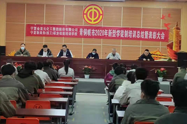 2020年集团公司与青铜峡市就业创业和人才服务中心联合成立了宁夏金昱元化工集团青铜峡片区“新型学徒制”电工培训班。培训活动得到片区、资源再生公司领导的大力支持。