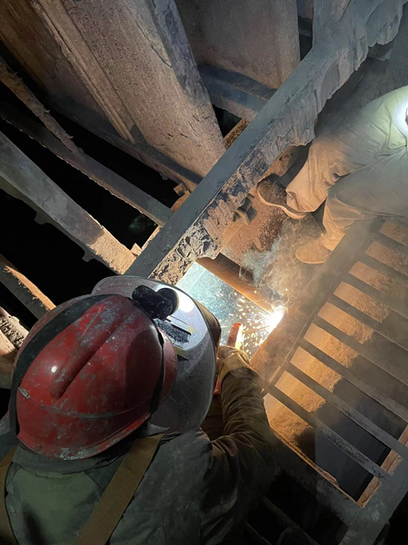 走进检修现场,各处都是一片繁忙的景象,无论是运行人员还是检修人员,每一个人都有明确的分工,他们有的拿焊枪精心焊接,有的拿气割修整材料,有的拿扳手拆装设备配件,有的拿倒链移动设备,有的拿着专业设备做着检测分析。他们虽然分工不同,但是心往一处想,劲往一处使,他们步调一致、同心协力,用实际行动力保检修工作安全、高质、按期完成,体现着作为一个团队的凝聚力、执行力和战斗力。这是一群可爱的人,这是一支优秀的队伍,他们夜以继日的奋战在检修现场,分分秒秒与时间赛跑,为的就是完成当天的检修任务。