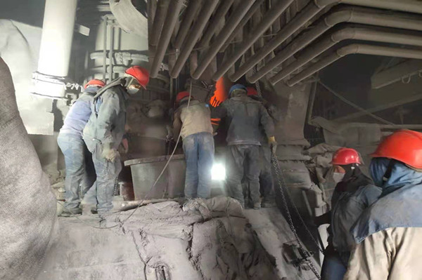 刚踏上平台,首先映入笔者眼帘的,是一群穿着蓝色牛仔工装的工友们正在有序的拆卸二层炉面保温材料准备更换烧损下料柱。只见他们个个干劲十足、衣服早已被汗水浸湿、黑乎乎的脸看不清谁是谁?他们顾不得炉面余温的炽热、炉面积灰的刺鼻积极投入到检修中,一时间呐喊声、叉车鸣笛声,起重吊车的口哨声,声声作响,犹如一首交响乐响彻整个检修现场!在大家的齐心协力下,烧损下料柱顺利被拆下,并按时装好!