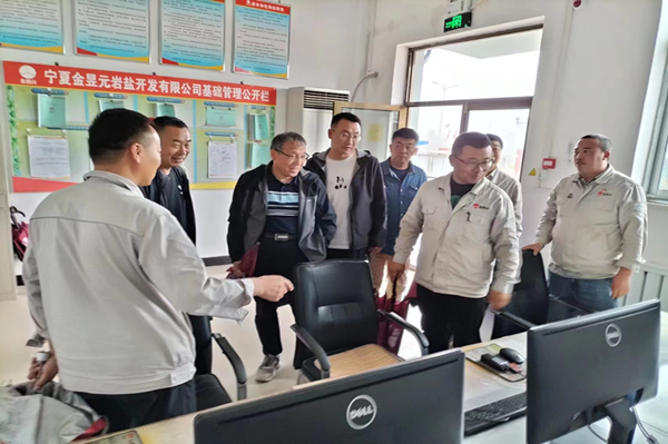 2022年8月25日上午,自治区绿色矿山建设考评验收小组组长朱平,带领绿色矿山建设考评验收小组,在原州区自然资源局矿产科张主任的陪同下,莅临金昱元岩盐开发公司开展绿色矿山建设第一次考评验收工作。公司总经理尚继荣、副经理庄涛及采卤副总工程师温艳廷等陪同检查。