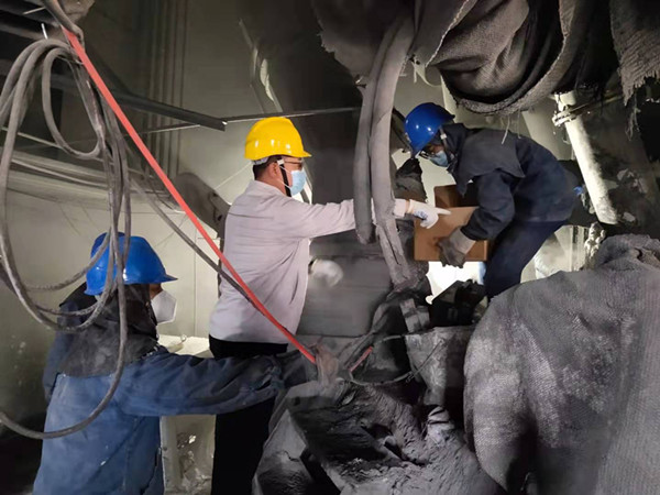 检修开始时对现场可能存在的危险有害因素进行分析评估,制定检修方案,落实安全应急救援措施,压实各级管理人员责任,要求相关单位人员深入检修现场,积极参与检修中,检修现场到处都是忙碌的身影,都记录着一个动人的故事,也是一幅描绘生动的人物素描,总经理王铁锁不辞劳累奔波在净化系统与炉面更换设备现场,落实安全措施同时对安装下料柱人员,底部环的规范性做出指导。