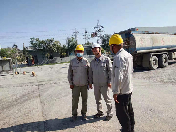 公司安全总监邹永清、副总经理马泽陪同专家组深入生产现场,对工艺流程、操作人员的劳动防护用品、设备运行情况向专家组逐一进行讲解。