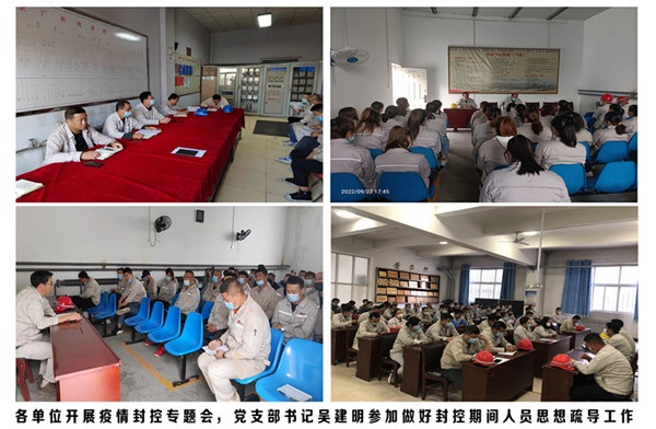 自疫情暴发以来,公司高度重视,按照集团公司于9月23日下发《关于全面做好疫情防控的通知》,9月26日青铜峡片区下发《青铜峡片区疫情防控补充要求》,马上严格执行疫情防控工作。能源化学公司综合科划定责任区落实到个人,严格做好单身楼、公寓楼、办公楼、餐厅消毒灭杀工作;严格做好全员健康码、行程码两码查验工作;严格做好每天疫情防控统计上报工作(人员外出返青、外来人员入青以及员工居家隔离动态变化情况);严格做好餐厅消毒、人员测温、环境卫生、食品安全、安全用电工作;严格监督管理禁止人员聚众赌博和班前酗酒;严格做好澡堂管理工作早上8:30至晚上8:00全天供应热水,做好疫情防控和后勤保障工作;党支部积极号召党员做好志愿者,发挥党员先锋作用做好职工思想疏导工作。