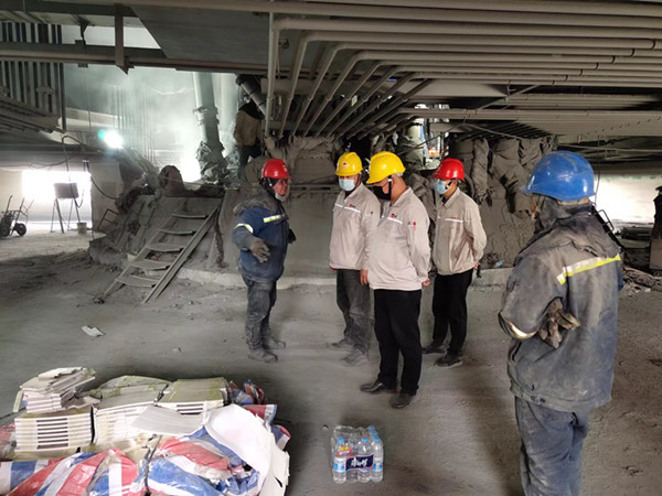 为确保本次检修工作顺利完成,公司领导深入现场严抓安全措施的落实,从检修方案的审核及检修过程中的监管,各级管理人员在现场对存在的隐患问题进行现场指导整改,对一些安全意识不够的员工进行现场教育,并对现场危险性大的作业项目重点进行监督检查。装置管理人员亲力亲为成为检修队伍的骨干力量从更换电极导电筒体、每一项工作都认真配合检修人员完成。此次检修干部和职工发扬不怕苦,不怕累的精神,上下齐心、同心协作,有信心安全、保质、按计划完成此次检修任务。