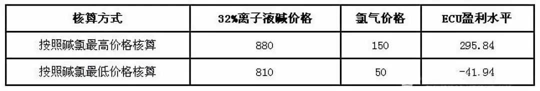 按照碱氯最低价格核算,无自备电厂的氯碱企业ECU平均亏损41.94元/吨,而按照最高价格核算,无自备电厂的氯碱企业盈利295.84元/吨。