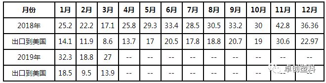 表3 2018-2019年PVC地板出口统计