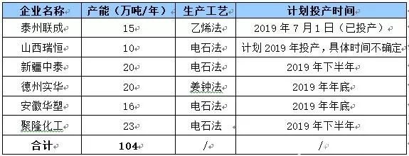 表2 2019年下半年PVC企业扩能计划