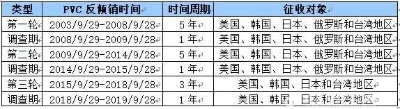 表3 国内PVC历次反倾销政策