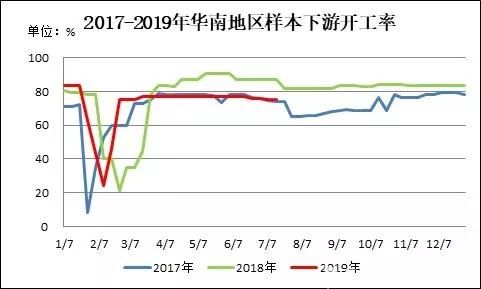 图7 2017-2019年华南地区样本下游开工率