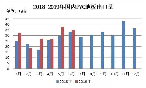 图9 2018-2019年国内PVC地板出口量