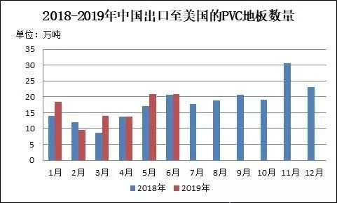图10 2018-2019年中国出口至美国的PVC地板数量