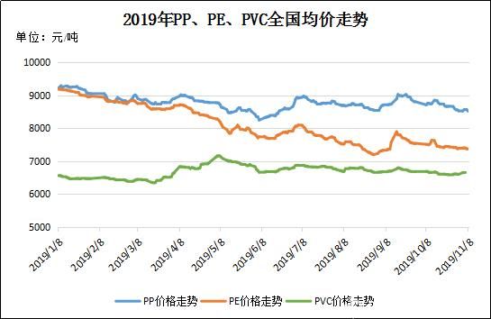 图3 2019年PP、PE、PVC全国均价走势