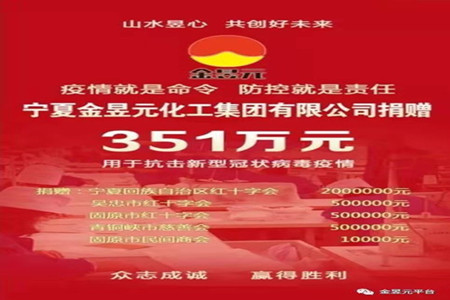 2月月5日,集团公司及所属子公司向宁夏回族自治区红十字会、吴忠市红十字会、固原市红十字会、固原市民间商会、青铜峡市慈善会共捐赠351万元现金,为抗击新冠病毒肺炎疫情提供支持。