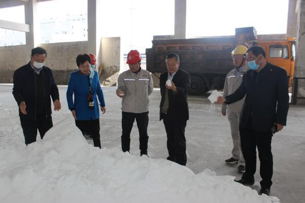 王紫云副主席一行先后到固原片区展厅、中控室、盐仓、厂区等进行实地查看。集团公司副总裁兼片区总经理乔冠荣就片区疫情防控、复工复产、生产经营等情况进行了汇报。