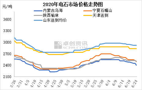 电石出厂方面:本周电石企业开工略增但变化不大,运输检查较严,部分电石厂出货一般,有降价促销现象,带动多数出厂价走低。目前各地电石出厂价为:内蒙古乌海地区电石贸易出厂价2400-2450元/吨,固定下游合算出厂价2350-2450元/吨,高端价格不多;内蒙乌盟地区2600元/吨,个别再低也有,计划下调;宁夏石嘴山地区电石主流出厂价2450-2550元/吨;陕西地区出厂2420-2600元/吨;甘肃地区2500-2600元/吨。