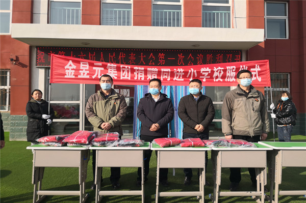 为关心下一代,助力农村学生,弘扬奉献精神,2021年12月30日和2022年1月4日,宁夏金昱元化工集团股份有限公司前往固原市原州区寨科乡各小学、学前班,青铜峡市同进小学、学前班及广武中心小学,分别举行了校服捐赠活动仪式,在寒冷的冬日,为孩子们送上了融融暖意。