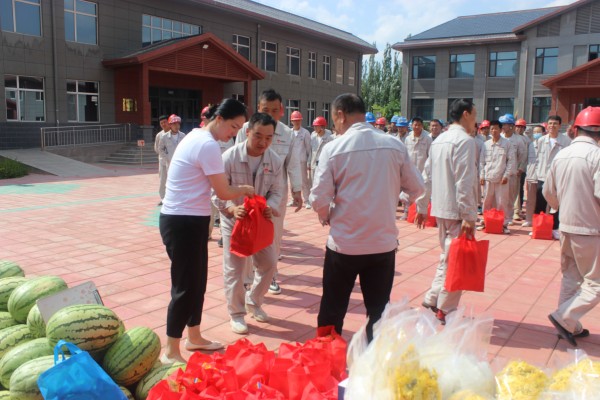 青铜峡市总工会和固原经济开发区总工会为集团公司送来西瓜、矿泉水、金丝菊、冰糖等防暑物品,表达对企业一线员工关心和厚爱。