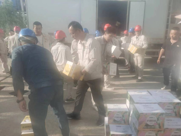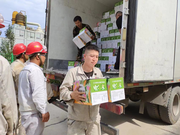 工作人员将防暑品送到生产一线,将浓浓关爱送到员工们手中,员工们在酷热的夏天如饮甘泉,神清气爽。