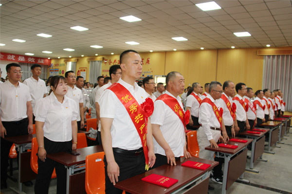 他指出,今天我们隆重集会,庆祝伟大的中国共产党成立104周年,这是一次缅怀党的丰功伟绩的纪念大会,是一次学习先进典型的表彰大会,是一次持续抓好公司“五年规划”攻坚鼓劲的大会,也是一次深入贯彻中央八项规定精神学习教育的专题党课。在此,我代表公司党委,向长期以来辛勤工作在各个岗位上敬业奉献的全体员工,在推动公司发展中起到中流砥柱作用的全体党员,表示衷心的感谢和崇高的敬意;向将要受到表彰的优秀共产党员、先进党支部和优秀党务工作者表示热烈的祝贺,向广大党员致以节日的问候!